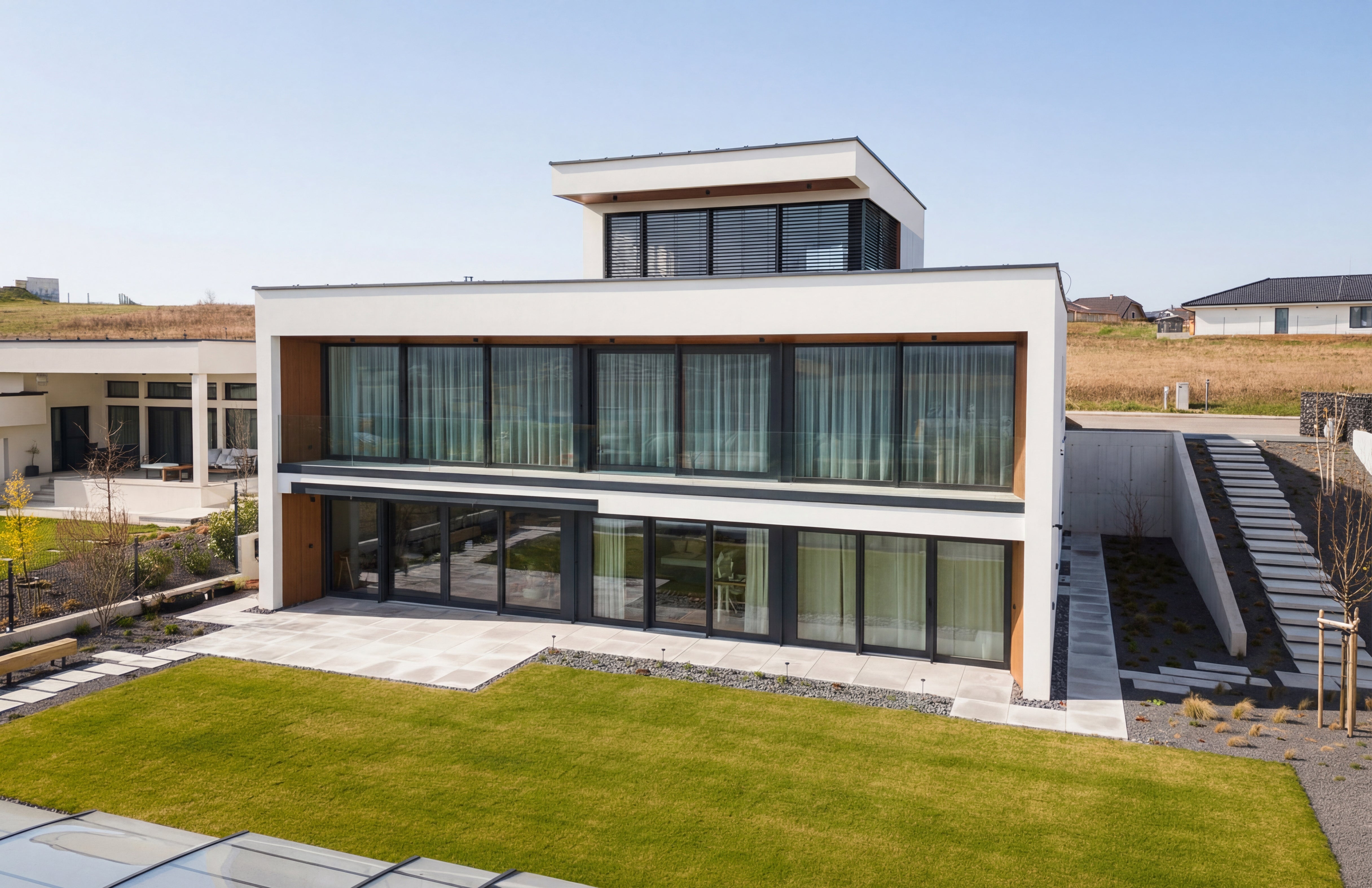 Celkové vyznenie projektu je dôkazom toho, že moderná architektúra môže s rešpektom pristupovať k materiálom aj okolitému priestoru. Okná MINTAL tu neplnia len technickú funkciu, ale stávajú sa integrálnou súčasťou architektúry. Definujú charakter domu, vytvárajú pokojný vizuálny rám a prepájajú interiér s vonkajším svetom. Podporujú tak atmosféru čistoty, otvorenosti a komfortu, ktorá je pre tento dom charakteristická.